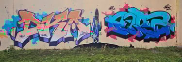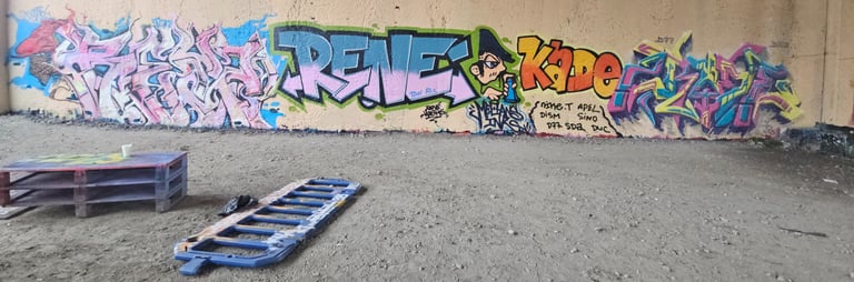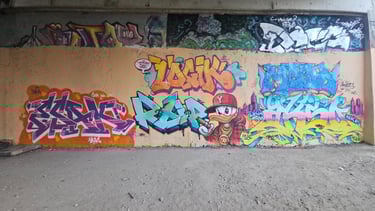 Obso, Easy et Shok avaient commencé une fresque, nous l'avons ralongé avec Mosko, Fast, Ers, Rathur, 7Acé, Généric, Godelu, Aucre, Deas, Irok, Orka, Ben Alpha et la jeune génération Nao (9ans), Mat B. (7ans) et Mey (8 ans) ! On continu la fresque mardi ;)