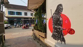 Mon séjour artistique de 24 jours au Laos, en mars 2025, s'est déroulé sous le signe de l'échange culturel et de la collaboration avec la communauté francophone. Ces interventions ont permis d'ancrer mon art dans des lieux d'éducation et de diplomatie, renforçant le dialogue entre la culture urbaine et les institutions.