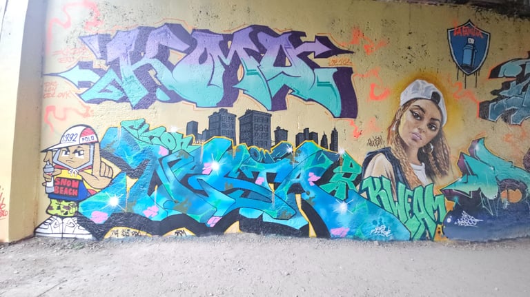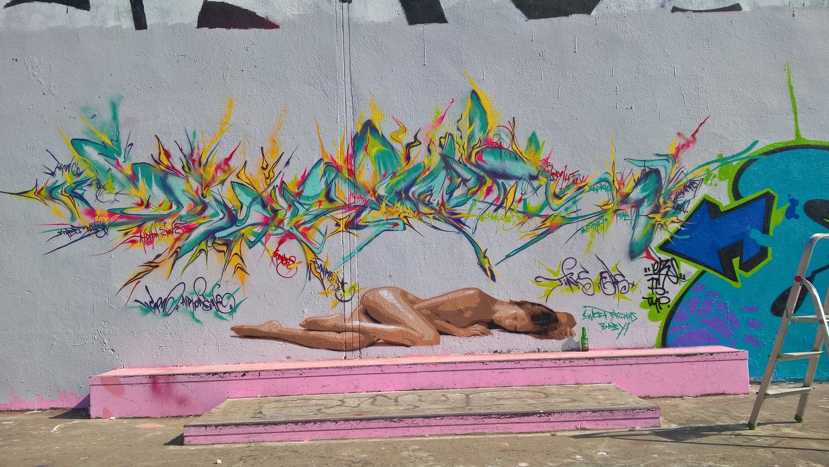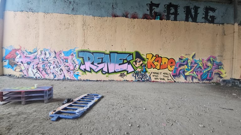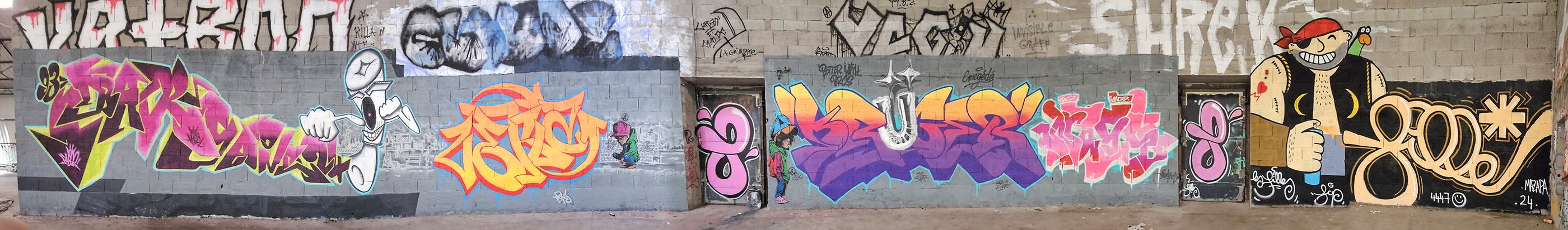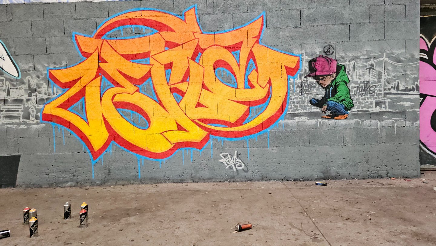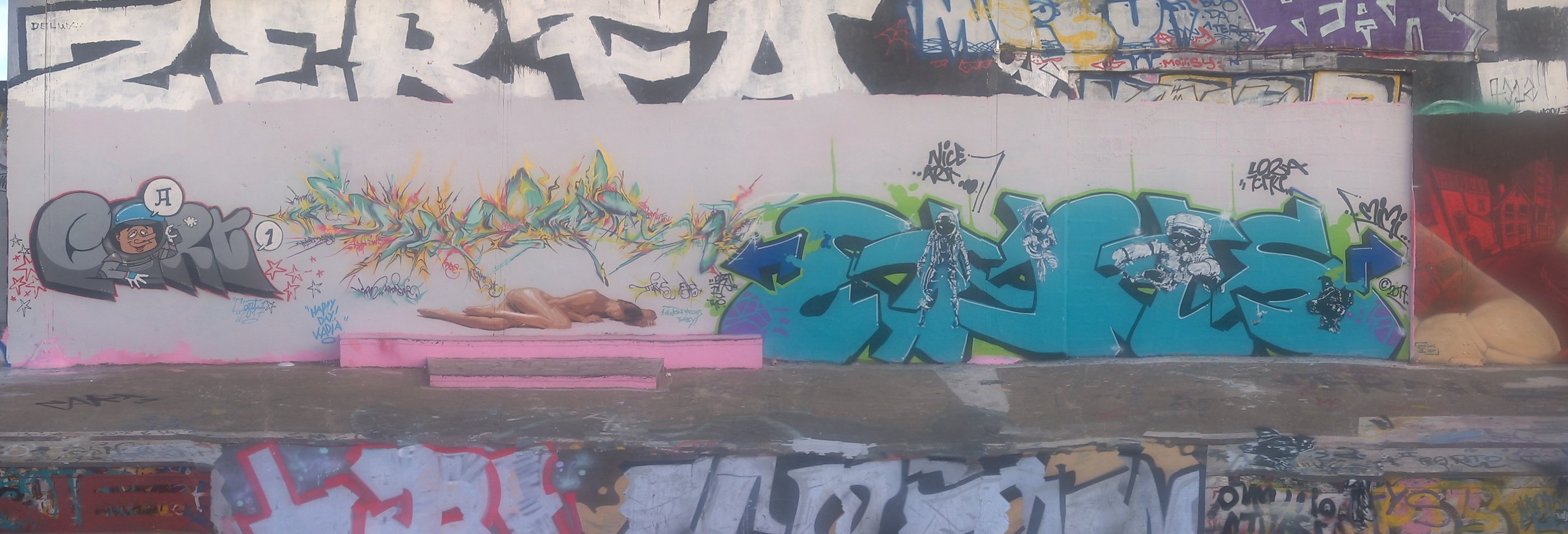 Obso, Easy et Shok avaient commencé une fresque, nous l'avons ralongé avec Mosko, Fast, Ers, Rathur, 7Acé, Généric, Godelu, Aucre, Deas, Irok, Orka, Ben Alpha et la jeune génération Nao (9ans), Mat B. (7ans) et Mey (8 ans) ! On continu la fresque mardi ;)