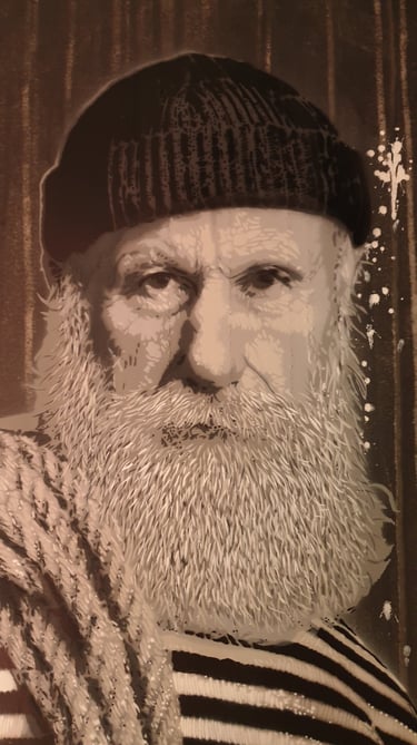 L'œuvre rend hommage à Ulyss, une figure familière et SDF de Nantes, dont la présence bienveillante a marqué mon enfance. Au-delà de sa situation, Ulyss était pour moi une oreille attentive, un homme avec qui je passais des après-midi entières à parler, même si l'objet de nos échanges s'est estompé avec le temps. Ce que je retiens est la qualité de son écoute, un don d'humanité que je cherche à immortaliser ici. Ce portrait est un acte de reconnaissance envers ces âmes qui vivent en marge mais qui, par leur simple présence, nous offrent parfois les plus belles leçons de bienveillance et d'humanité au cœur de la ville.