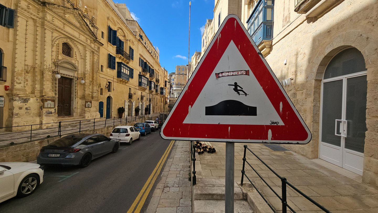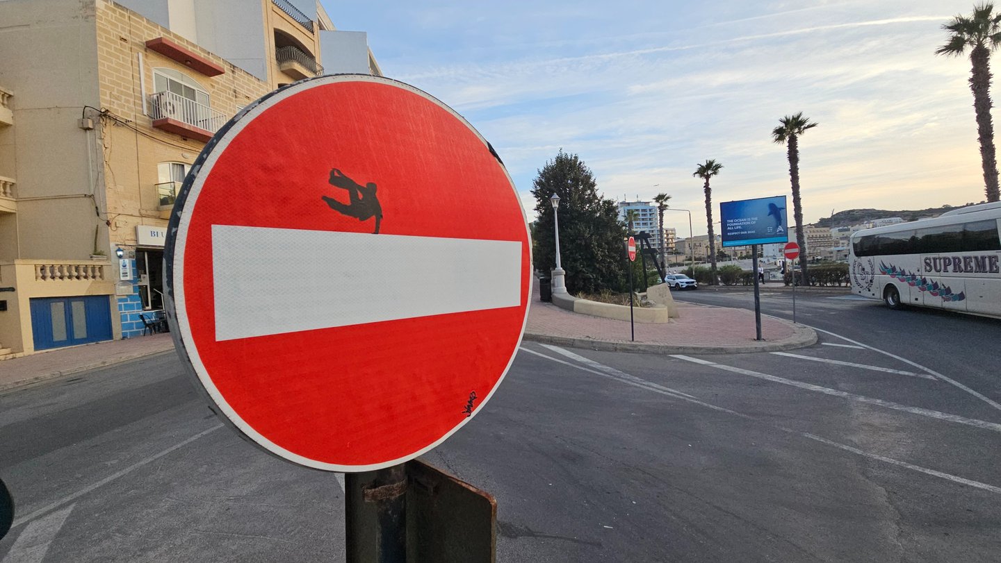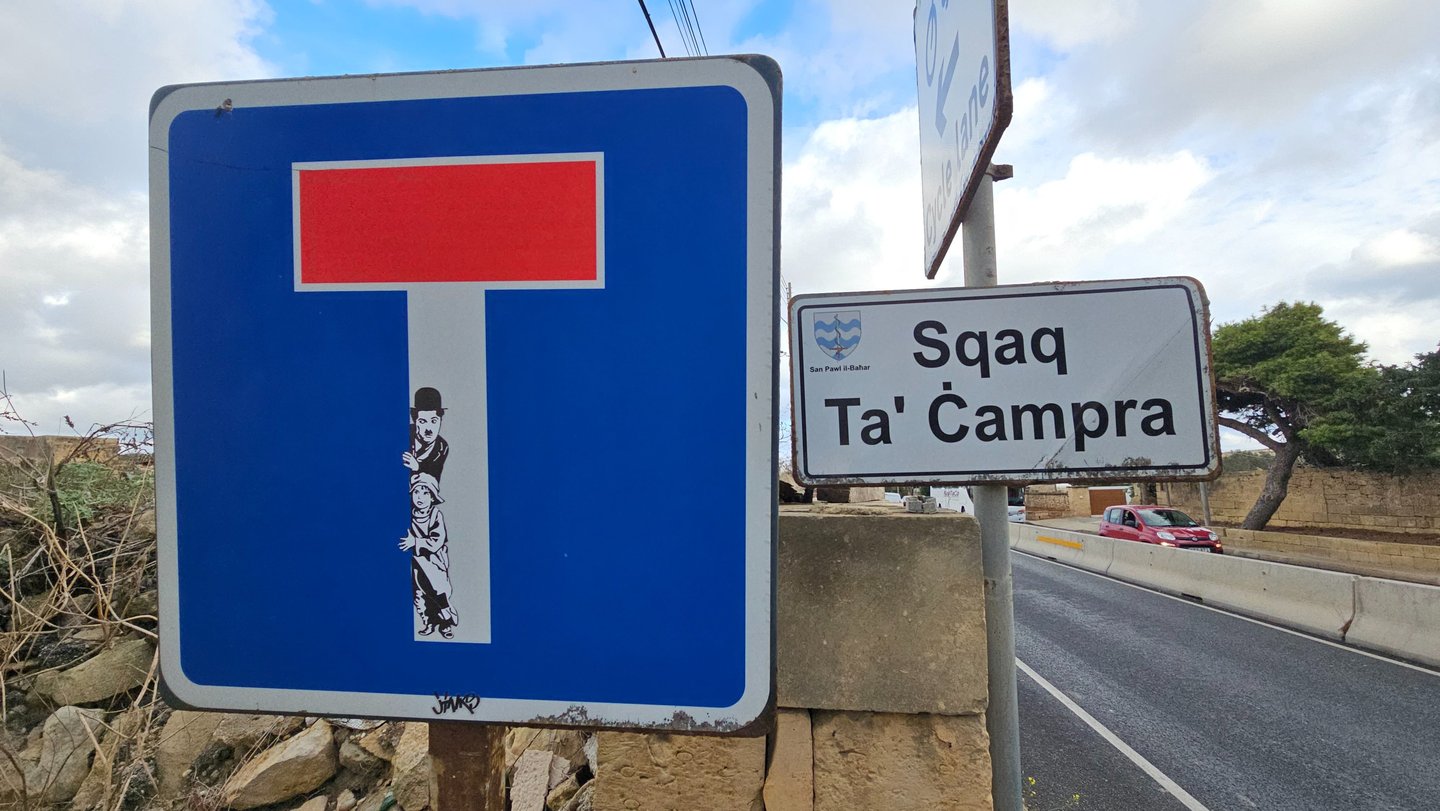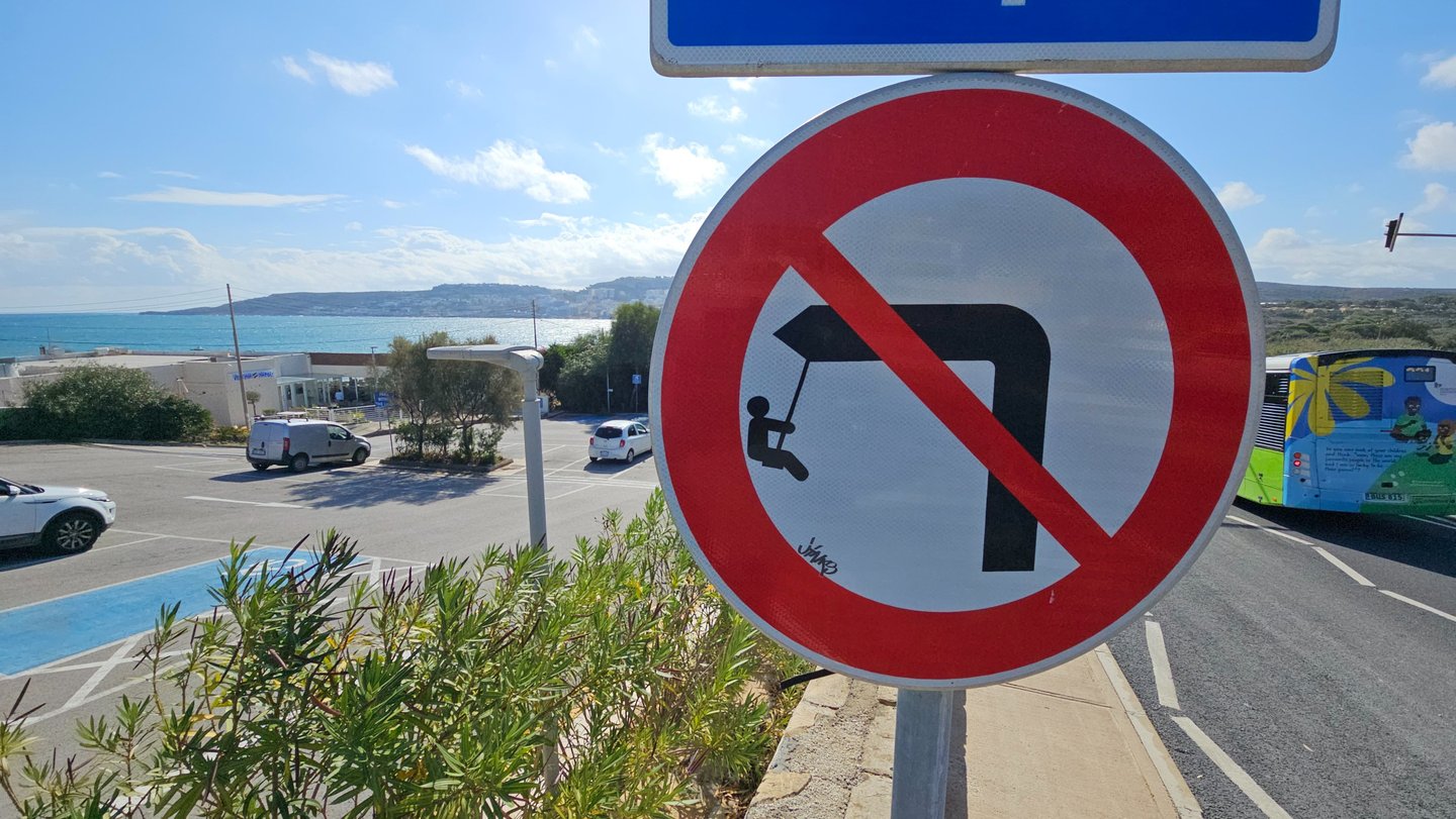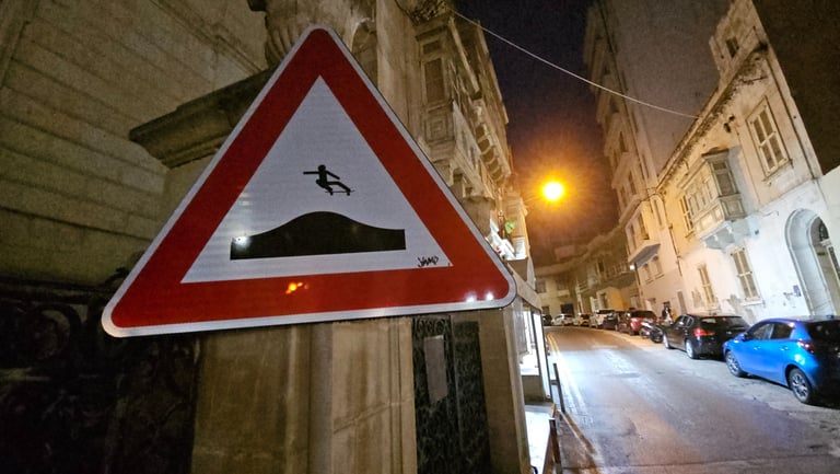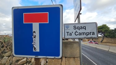 Les 10 détournements de panneaux, réalisés dans plusieurs villes (La Valette, Marsaakala, Ir Rabat, St Julian's, Sliema...), complètent ce bilan. Ces interventions éphémères transforment le langage normatif de la signalisation routière en messages inattendus, offrant un sourire et une réflexion aux passants.