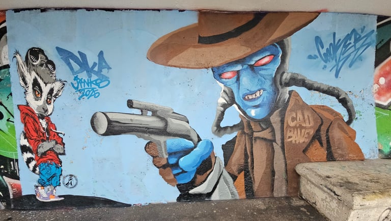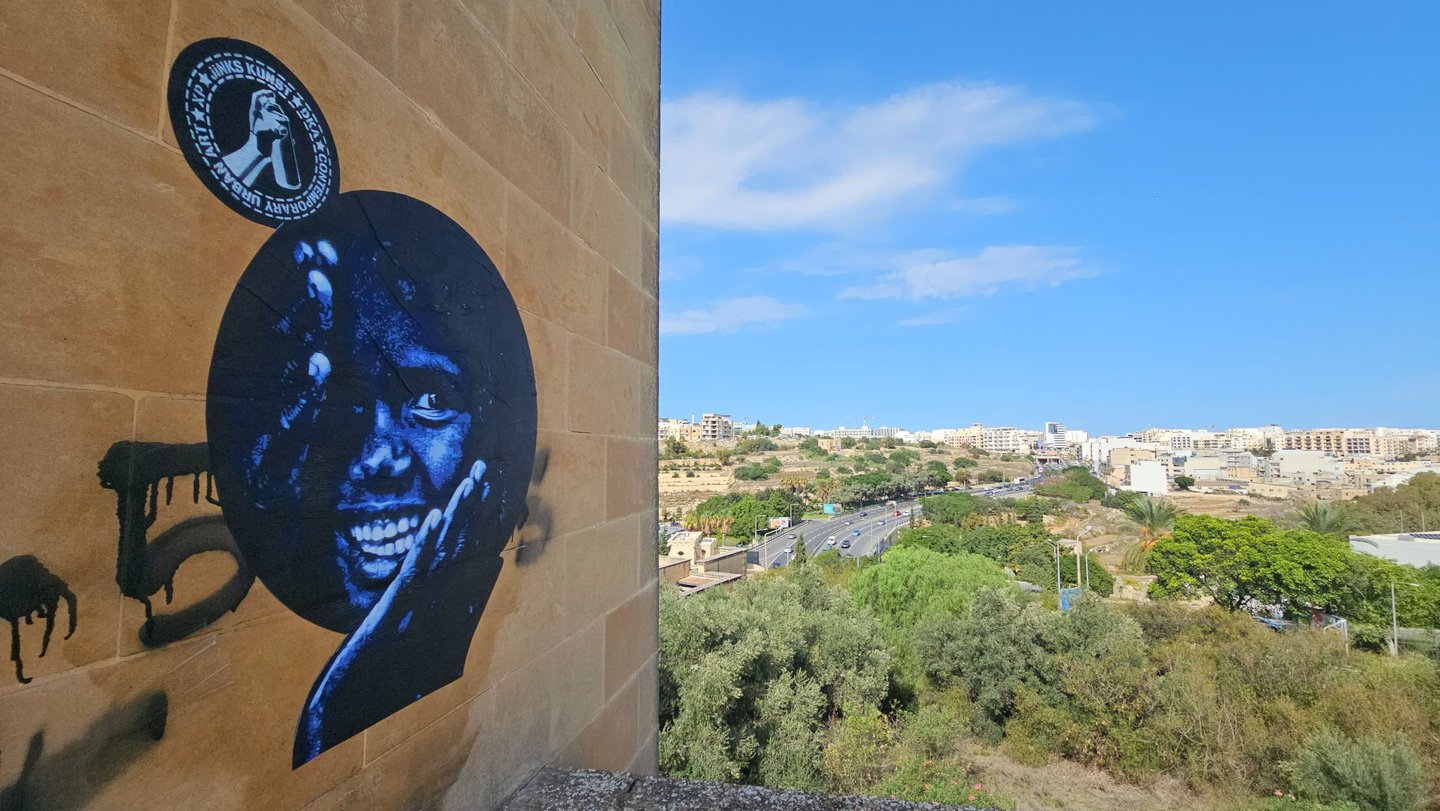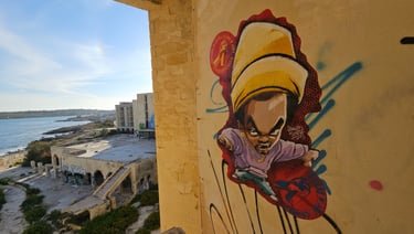 La réalisation de la fresque en collaboration avec l'artiste maltais "Cooker" est significative. Le street art est souvent basé sur l'échange et la collaboration. Pour moi il est important de collaborer avec les artises locaux lors de mes voyages.